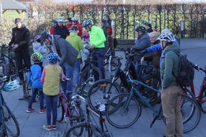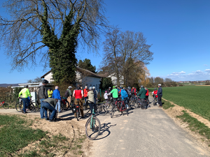 Die Tage werden endlich deutlich länger, die Sonne lockt nach draußen und Fahrradfahren macht wieder mehr Spaß. Dementsprechend luden die GRÜNEN im Stadtteil alle Interessierten zu einer Fahrrad-Aktion ein: Den Auftakt bildete eine kleine Fahrradtour durchs Bommersheimer Feld mit kurzen Zwischenstopps an Standorten mit besonderer Natur oder Geschichte. Dabei erfuhren die rund 40 Teilnehmenden beispielsweise, wo in Bommersheim einst Braunkohle abgebaut wurde (an der „Gnade Gottes“) und wo vulkanisches Gestein von lange zurückliegenden Erdaktivitäten kündet (im Hubertuswäldchen). Spontan gab ein Beteiligter Einblicke in den Gemeinschaftsgarten Bommersheim. Auch zum aktuellen Stand der Planungen für die weitere Entwicklung des Bolzplatzes wurde etwas gesagt.