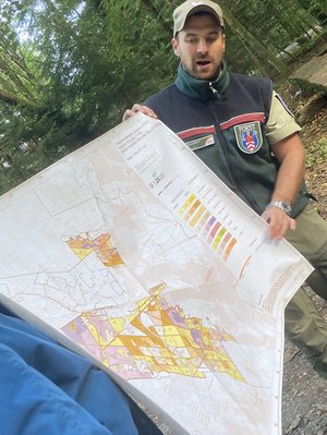 Wir erfuhren, dass die Pflege des Waldes mit seinen schönen Spazierwegen in den letzten Jahren aufwendiger und kostenspieliger geworden ist. Viele Bäume sterben durch den  Klimawandel ab, sind umsturzgefährdet und müssen zur Absicherung der Wege gefällt werden.