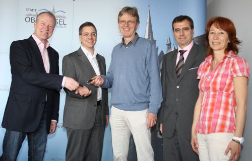 Foto (v.l.): Michael Reuter (Focus O.), Christof Fink (Grüner Stadtrat), Peter Matthäy (Bündnis 90/ Die Grünen), Bernd Lienhard, (Thomas Cook AG), Alexandra Schnabel (Stad Oberursel)
