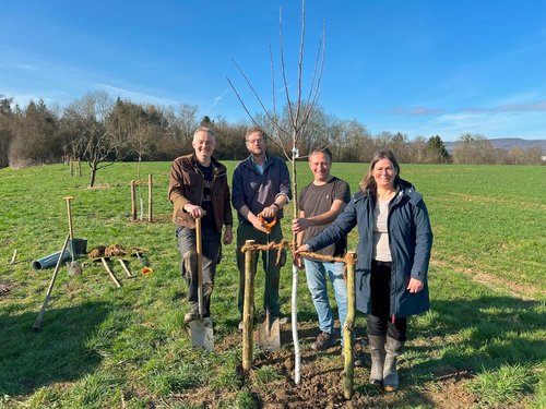 Am 16.3.2024 sollen in einer nochmaligen Aktion weitere sechs Apfelbäume gepflanzt werden.