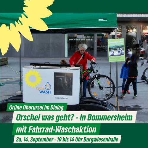 Wir gehen mit unserem Dialogformat „Orschel was geht?“ in die nächste Runde. Am Samstag, dem 14. September von 10 bis 14 Uhr laden wir auf den Platz vor der Burgwiesenhalle in Bommersheim ein. Es gibt nicht nur die Möglichkeit für Gespräche mit Ortsbeiratsmitgliedern und Stadtverordneten, sondern auch zum kostenfreien Fahrradwaschen.