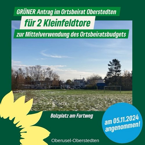 Unser Antrag zur Verwendung des Ortsbeiratsbudgets in 2024 für den Kauf von zwei Kleinfeldtouren für den Sportplatz Furtweg in Oberstedten wurde am 5. November angenommen.