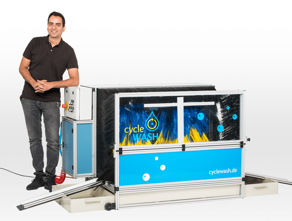 Jeder, der Lust, Zeit und ein Rad hat, kann sich dieses in der umweltfreundlichen und innovativen Fahrradwaschanlage von cycleWASH kostenlos auf Hochglanz bringen lassen. Egal ob Pedelec, E-Bike oder traditionelles Fahrrad, innerhalb von 3-5 Minuten ist das Rad wieder sauber. Das Prinzip ist ähnlich wie bei einer Autowäsche: Das Fahrrad wird in die Anlage reingeschoben. Über Düsen wird Wasser und umweltfreundlicher Reiniger auf das Rad gespritzt und automatisch betriebene Bürsten säubern und polieren es. Der Fahrradlack wird Dank der weichen Bürsten dabei nicht zerkratzt. Pro Waschgang werden dabei gerade einmal 100ml verbraucht, da das Waschwasser gefiltert und mehrfach verwendet wird. Der Wasserverbrauch ist somit deutlich geringer, als bei der Radwäsche zu Hause per Hand, Durch die ausgeklügelte Mehrfachfilterung kann das Schmutzwasser auch am Ende des Tages ohne Bedenken in der Kanalisation entsorgt werden.