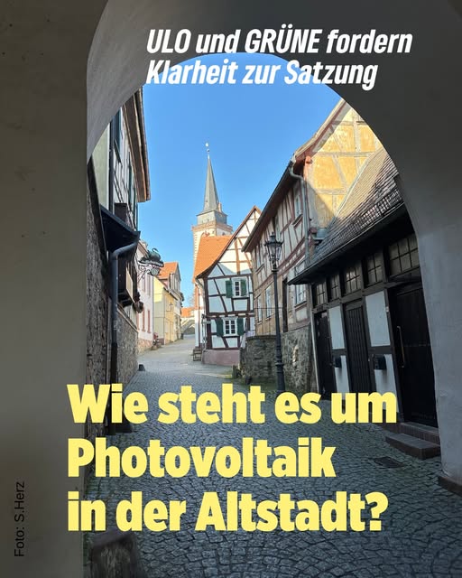 Thomas Fiehler, Mitglied der ULO-Fraktion im Bau-, Umwelt- und Klimaschutzausschuss, betont: „Die Energiewende kann nur gelingen, wenn auch in der Altstadt Photovoltaikanlagen zugelassen werden. Es ist enttäuschend, dass der Magistrat trotz eines klaren Beschlusses seit zwei Jahren keine Fortschritte vorweisen kann. Wir erwarten, dass der Entwurf jetzt endlich kommt.“