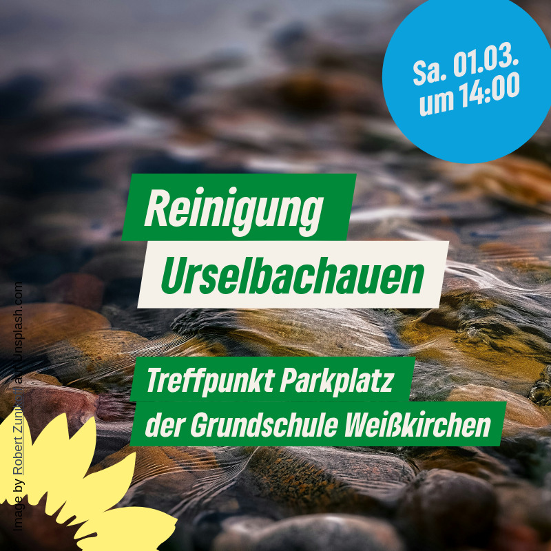 Wir laden zur jährlichen Bachreinigung der Urselbachauen am 01.03.2025 um 14:00 Uhr ein! Alle naturinteressierten Bürger sind herzlich bei der Bachreinigung der Urselbachauen, zwischen der Grundschule Weisskirchen und der Krebsmühle, eingeladen!
