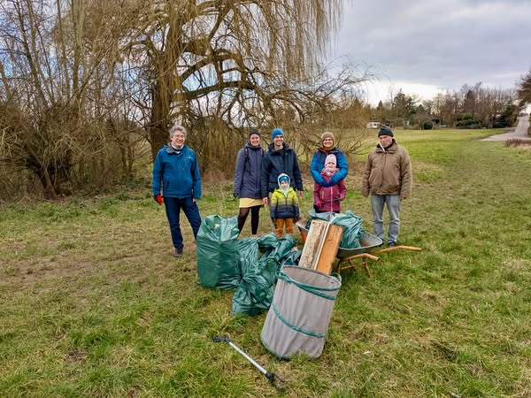 Mit 10 Personen haben wir die Weisskirchener Urselbachauen gereinigt! Groß und klein halfen tatkräftig dabei, die Landschaft zwischen Grundschule und Krebsmühle von Müll zu befreien. Auch dieses Jahr lag die Hauptarbeit beim Einsammeln von kleinen Plastikschnipseln, altem Leergut und ein paar angeschwemmten alten Holzbrettern.