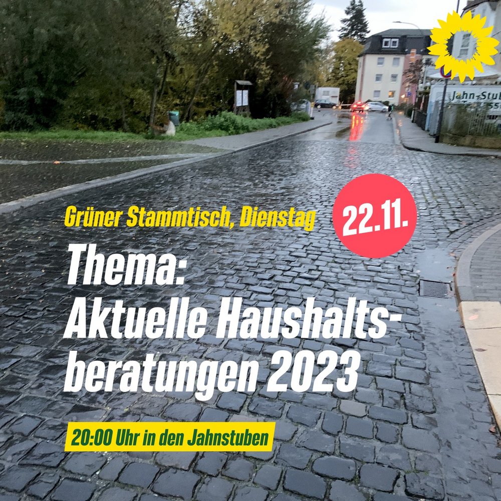Wir laden für Dienstag, 22. November, um 20 Uhr ins Restaurant Jahnstuben, Korfstr.. 4, zum Stammtisch ein. Die aktuellen Haushaltsberatungen zum kommunalen Haushalt 2023 werden hier im Mittelpunkt stehen. Die Experten aus unserer GRÜNEN Fraktion freuen sich auf Eure kritischen Fragen und Anmerkungen.