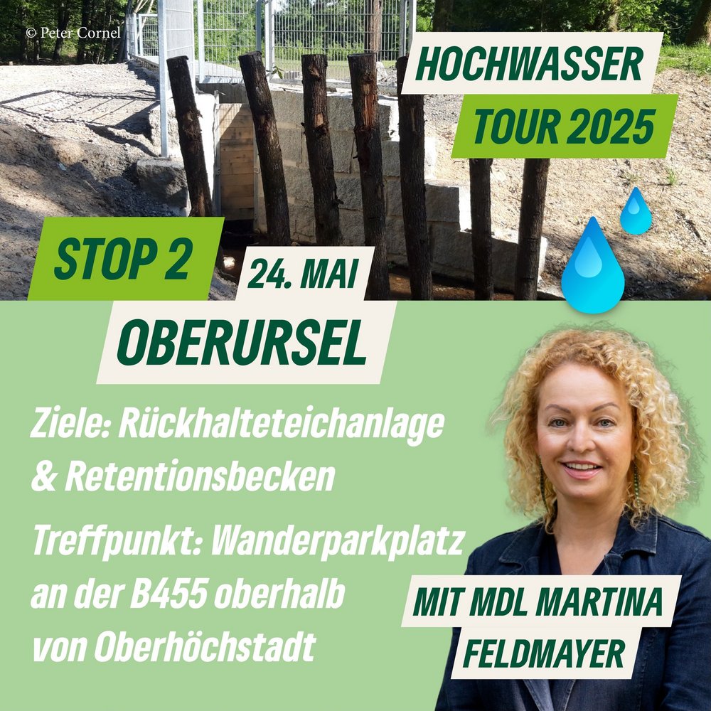 Am 24. Mai macht die grüne Landtagsabgeordnete Martina Feldmayer auf ihrer „Hochwassertour Sommer 2025“ Station in Oberursel. Ziel ist es, sich vor Ort über die Maßnahmen zum Hochwasserschutz zu informieren und sich mit Fachleuten auszutauschen.