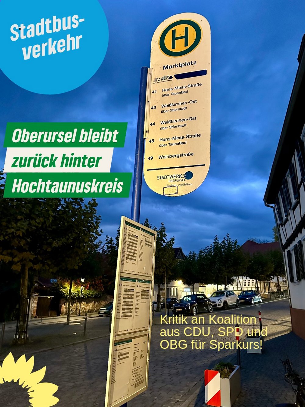 Die GRÜNEN-Fraktion setzt sich aus Verantwortung für soziale Gerechtigkeit, konsequenten Klimaschutz und eine zukunftsfähige Mobilität in Oberursel für den Erhalt und Ausbau eines leistungsfähigen Stadtbusverkehrs ein.
