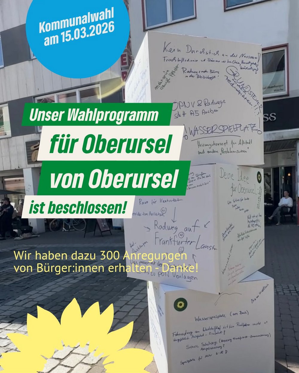 „Wir wollten kein Programm, das am grünen Tisch entsteht, sondern eines, das die Lebensrealität der Menschen aufgreift“, so Herz weiter. „Dieses Programm ist ein breites und buntes Angebot an alle Oberurseler:innen, die ihre Stadt gemeinsam mit uns gestalten wollen – ökologisch, sozial und zukunftsfest.“